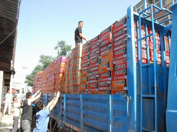 8月15日一大早,長開廠公司和二一三公司領(lǐng)導(dǎo)又親臨裝運現(xiàn)場,指揮物資裝運,上午11時許,救災(zāi)物資裝車完畢,由長開廠公司支援的1551箱方便面、60件火腿腸、5件榨菜和長城電工二一三公司支援的2210箱礦泉水,總價值74138元的救災(zāi)物資由天水長開公司黨委書記白天洪和二一三公司黨委書記楊大友帶隊火速送往白銀公司廠壩鉛鋅礦。